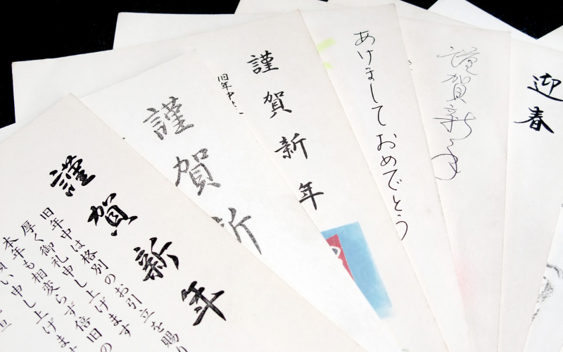 Tradicionalmente, os cartões de ano novo são enviados pelos correios para chegar no dia 1.º de janeiro. Eles apresentam o símbolo animal do zodíaco do próximo ano (em 2024 será o dragão). Os japoneses expressam gratidão à família e desejam um bom ano nestas mensagens.