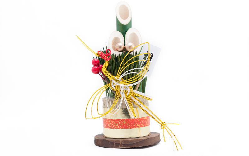 A decoração de pinho e bambu colocada na entrada de uma casa ou loja começa a ser vista em meados de dezembro e fica até o dia 7 de janeiro, geralmente apresentando três brotos de bambu cortados diagonalmente em comprimentos diferentes, um pinho e uma base de palha. O bambu e o pinho estão ligados à crença xintoísta de espíritos divinos que residem nas árvores e são simbólicos, pois representam longevidade, força e prosperidade.