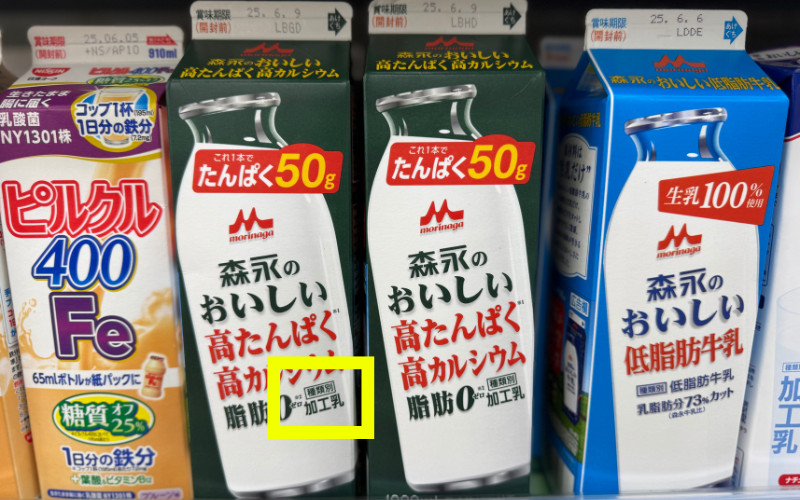 No Japão, o que chamamos genericamente de “leite” pode incluir desde o leite puro de vaca até bebidas lácteas com aditivos. Existem diversas variações, e entender o que está escrito no rótulo pode evitar confusões. À primeira vista, as embalagens podem parecer muito parecidas, mas os kanjis nos rótulos revelam informações importantes: enquanto uma é leite integral, a outra é uma bebida láctea — e isso faz toda a diferença na composição e no sabor!