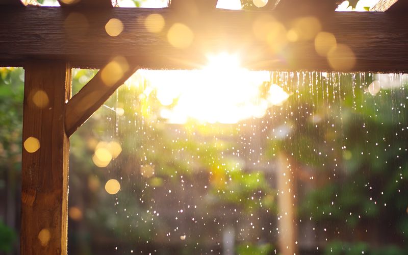 Outra interpretação muito conhecida acontece durante os sunshowers, quando a chuva cai mesmo com o sol brilhando forte. Em japonês, esse fenômeno é chamado de kitsune-ame (狐雨, “chuva de raposa”) e, em várias regiões, também é explicado como o Kitsune no Yomeiri.