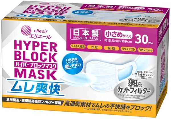 A máscara japonesa da marca Elleair é uma das mais recomendadas no Japão. Ela usa um filtro de alto desempenho com várias camadas que, em testes de laboratório, bloqueia cerca de 99 % de partículas como gotículas respiratórias, pólen e poeira fina, além de ter um formato que cria espaço ao redor da boca para facilitar a respiração e a fala. Há versões em tamanhos diferentes, como normal e pequeno, para melhor ajuste ao rosto.