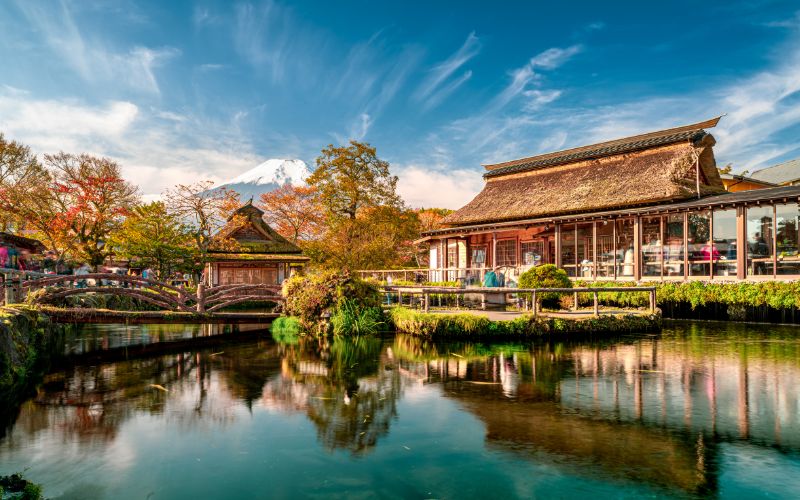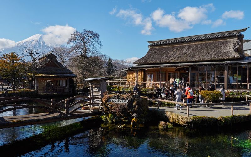 Além das lagoas, a vila preserva um ar tradicional, com moinhos d’água, pequenas lojinhas e casas antigas. É um dos melhores lugares para fotografar o Monte Fuji, especialmente no outono, quando as folhas vermelhas se refletem na água.